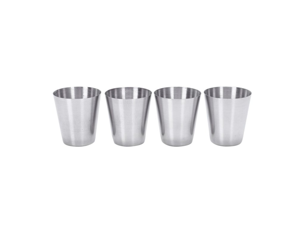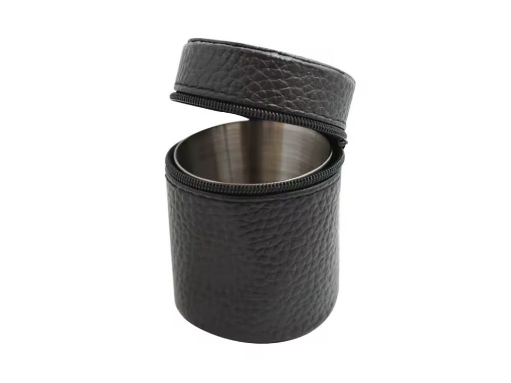 - 4 kovových sklenic o objemu 30 ml, koženkové pouzdro