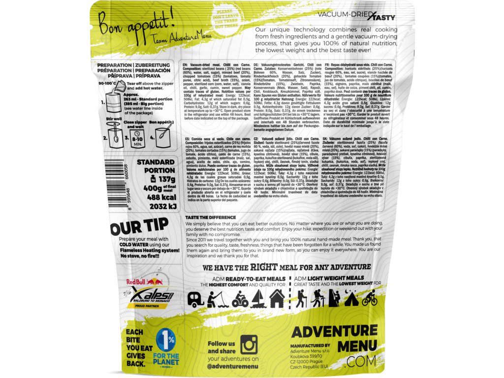Úspora hmotnosti až 80% - Po přidaní 395ml vody získáte 600 gramů pořádného jídla.