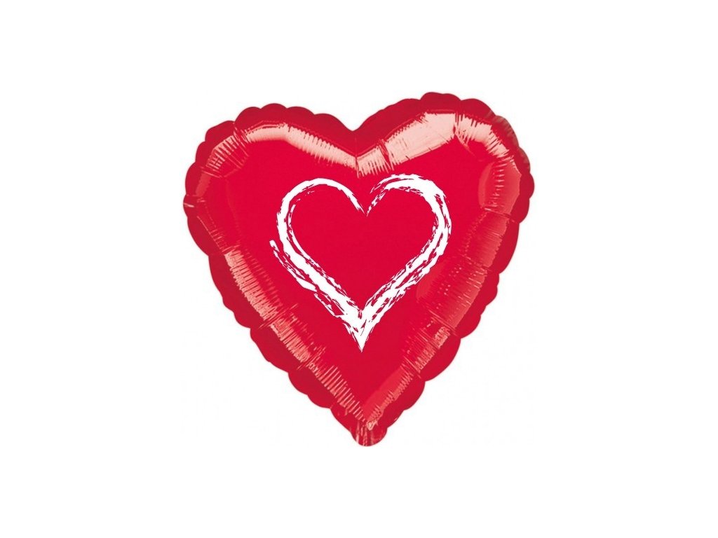 Balónek fóliový srdce 42cm červené se srdíčkem