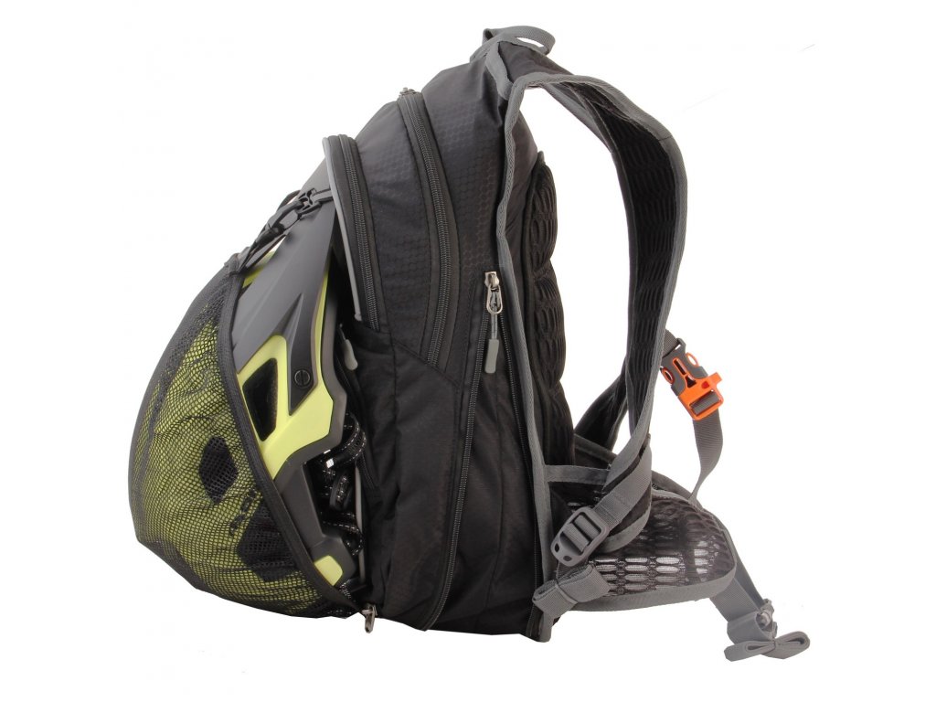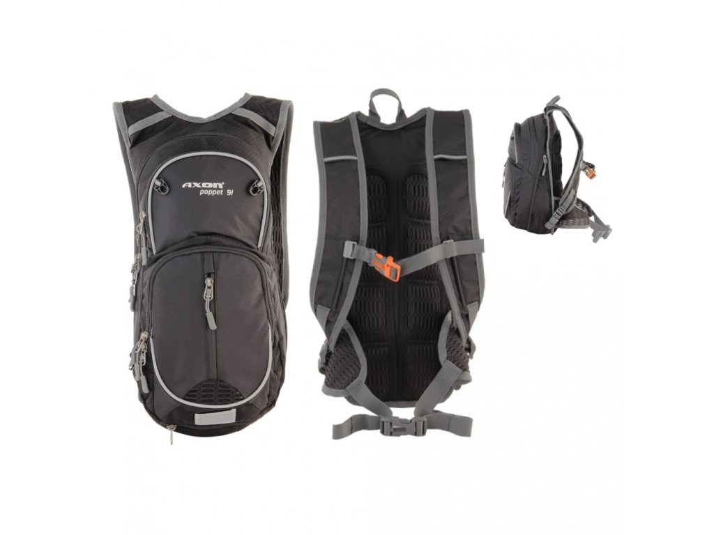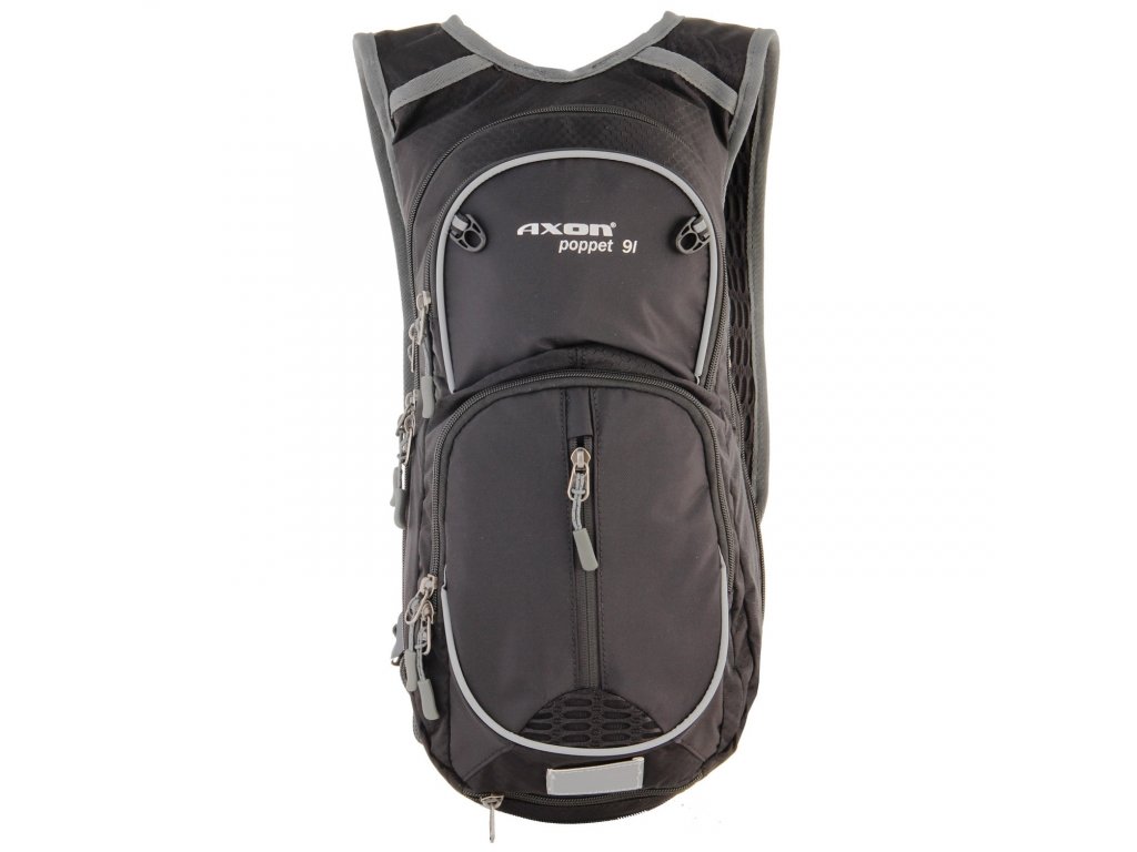 Cyklistický batoh s objemem 9 litrů Poppet od firmy Axon má polstrovaná odvětrávaná záda ACS. Hodí se především na cyklistické výlety. Oceníte velkou hlavní kapsu s možností zvětšení objemu a menší přední kapsy na drobnosti. Má kapsu s termofolií pro vak na vodu. Pomocí integrované síťky můžete přidělat Vaši přilbu. Odlehčené ramenní poruhy, dále bederní i hrudní popruh s píštalkou. Pro vaši větší bezpečnost má batoh reflexní prvky.