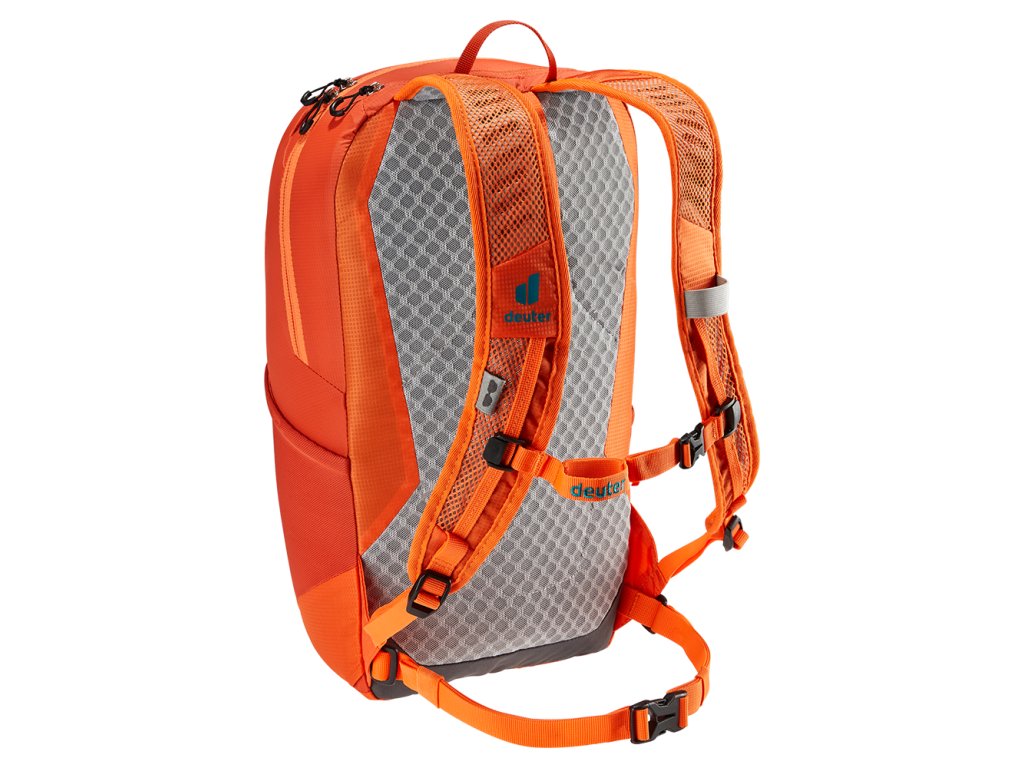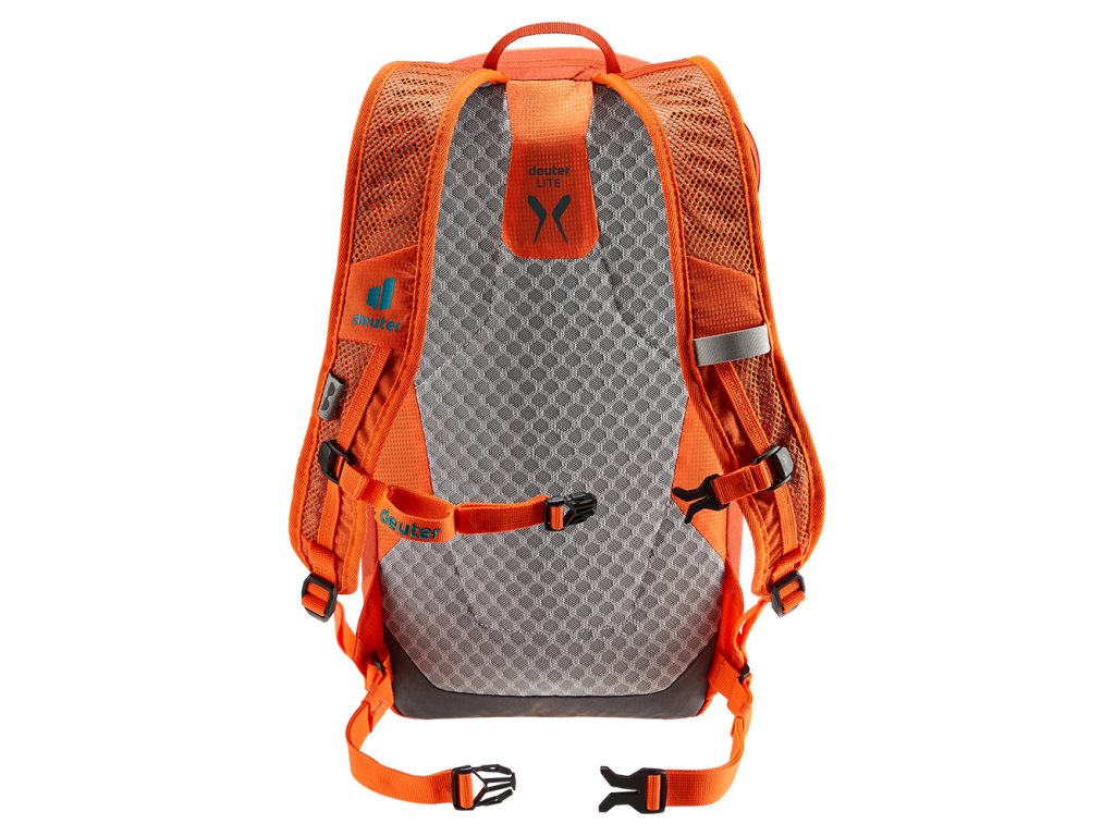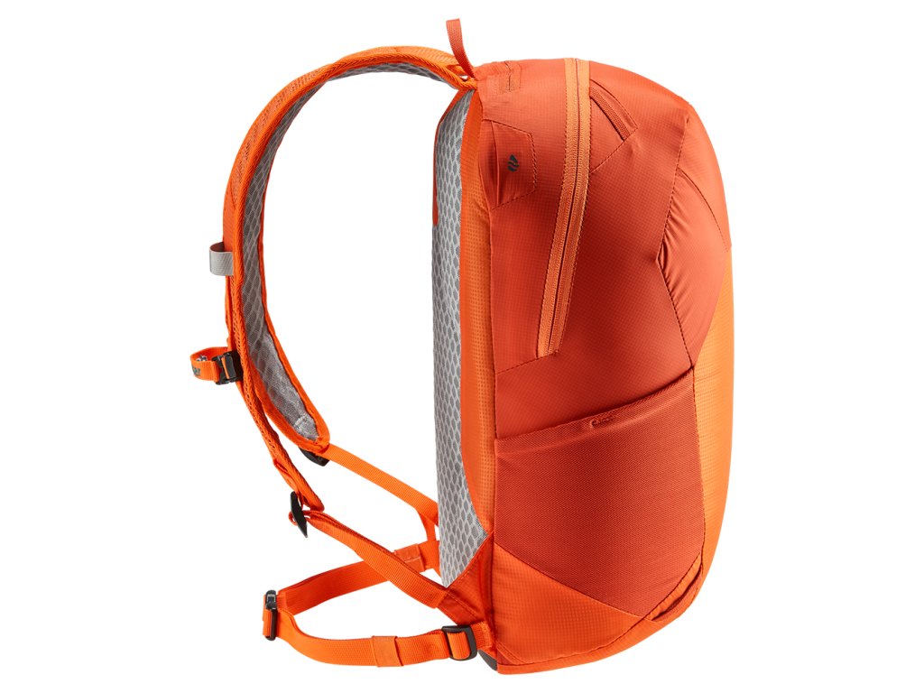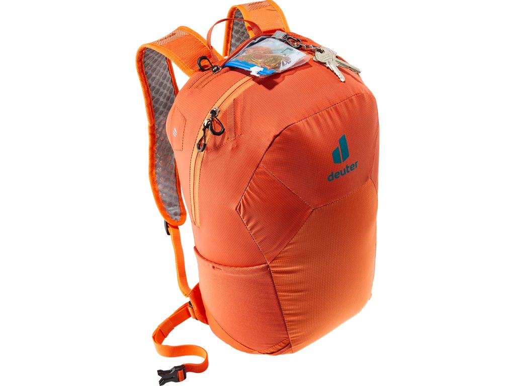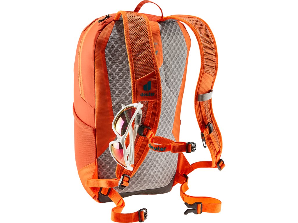 Lehký a skladný batoh Speed lite 17 od značky Deuter je menší velikostní kategorie s kvalitním zádovým systémem ze síťoviny a díky tvaru do V Vám ani nepřijde, že ho máte na zádech. Kromě něj se o pohodlné nošení postarají i anatomicky tvarované ramenní popruhy, výškově nastavitelný hrudní popruh a odnímatelný bederní pás. Své vybavení můžete uložit v hlavní komoře, dvou bočních elastických kapsách nebo kapse na zip na cennosti s klipem na klíče. Nechybí ani příprava na dvoulitrový vodní rezervoár. Z vnějšku naleznete poutka pro uchycení držáku helmy a systém pro uložení brýlí na ramenním popruhu.