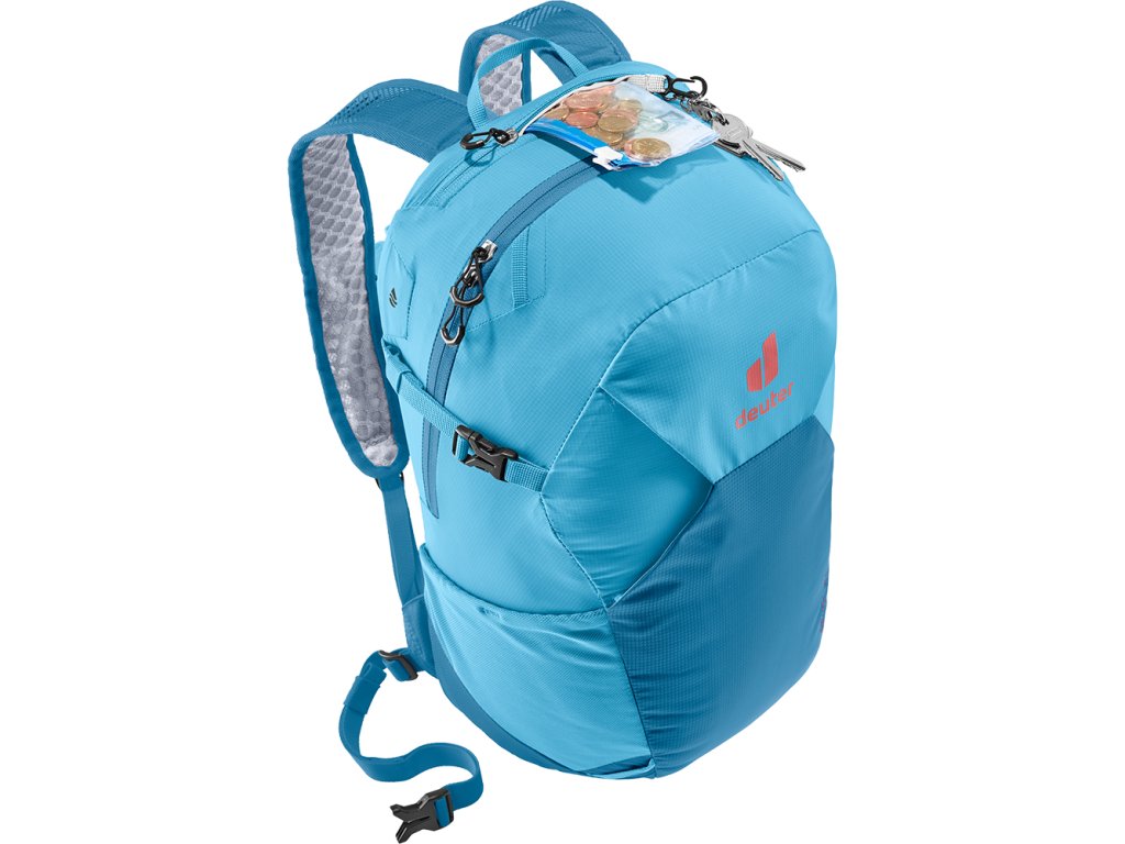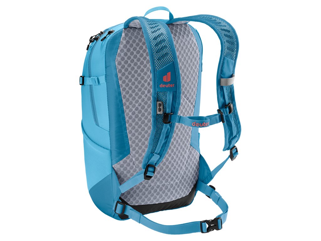 Turistický batoh Speed Lite 21 značky Deuter je lehký a udržitelný díky zádovému systému deuter's Lite, ergonomickým, perforovaným ramenním popruhům, odnímatelnému bedernímu pásu, přesně nastavitelnému hrudnímu popruhu a 100% recyklované, bluesign® certifikované tělové tkanině. Boční kompresní popruhy jsou navržené pro rychlou turistiku a účinně snižují pohyb zátěže a umožňují plný rozsah pohybu. To pomáhá šetřit energii i na delší vzdálenosti.