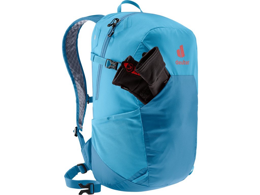 Turistický batoh Speed Lite 21 značky Deuter je lehký a udržitelný díky zádovému systému deuter's Lite, ergonomickým, perforovaným ramenním popruhům, odnímatelnému bedernímu pásu, přesně nastavitelnému hrudnímu popruhu a 100% recyklované, bluesign® certifikované tělové tkanině. Boční kompresní popruhy jsou navržené pro rychlou turistiku a účinně snižují pohyb zátěže a umožňují plný rozsah pohybu. To pomáhá šetřit energii i na delší vzdálenosti.