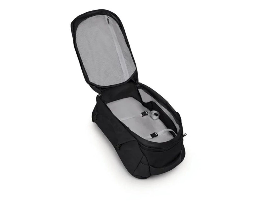 Pánská taška/batoh Farpoint 40 od značky Osprey je unikátním zavazadlem, které kombinuje výhody kufru, cestovní tašky a batohu v jednom. Jedinečný komfort zajistí zádový panel AirScape™, který je opatřen pěnovými výstupky a lze jej výškově nastavit (46-56 cm), takže je pohodlný a skvěle sedí. Panel poté doplňují pohodlné a prodyšné ramenní popruhy, které jsou doplněny o hrudní pás s píšťalkou a polstrovaný bederní popruh s přezkou. Optimální rozložení hmotnosti během přenášení zajistí rám ze 4mm drátu LightWire a rámový plát Atilon. Během odbavení lze celý panel včetně ramenních popruhů uschovat, takže nehrozí žádné poničení.