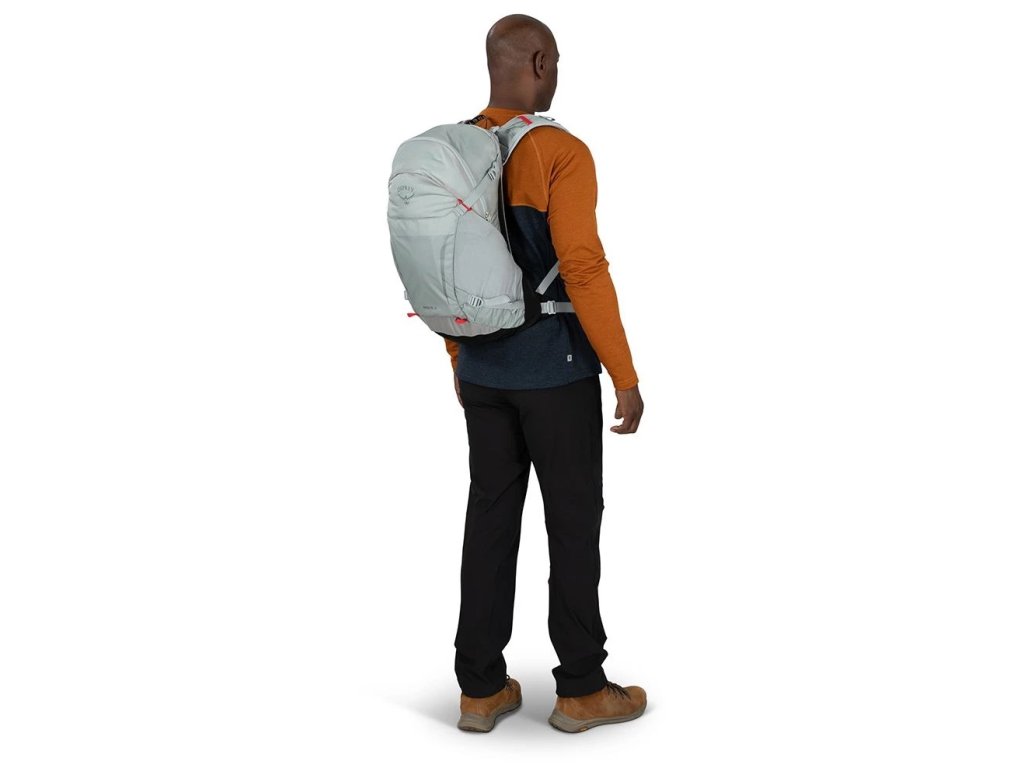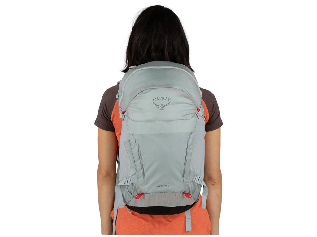 Turistický batoh Hikelite 26 od amerického výrobce Osprey je univerzální, výkonný a ideální jak na denní nošení ve městě, tak i na výlety do přírody. Batoh je vyrobený z odolného materiálu Nylon 100D Mini Diamond Shadow. Zádový systém AirSpeed™ zajišťuje vysokou prodyšnost a celodenní pohodlí. Dále nabízí odnímatelný jednoduchý bederní popruh a standardně nastavitelný hrudní popruh s bezpečnostní píšťalkou, praktickou kapsu na čelní straně, například na záložní oblečení.
