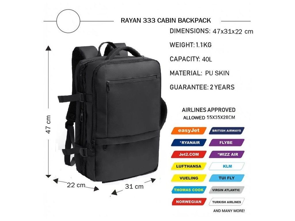 Cestovní batoh z natahovací PU kůže nabízí velkou kapacitu a pohodlí díky polstrovaným zádům a rukojetím. Obsahuje vnější přední kapsu se zapínáním na zip. Hlavní přihrádka s polstrovanou vnitřní kapsou na 17“ notebook. Vybaven kapsami proti krádeži na levé rukojeti a zádech a popruhem na kolečkách. Ideální na dlouhé cesty s kapacitou 40 l, kombinuje styl, funkčnost a bezpečnost.