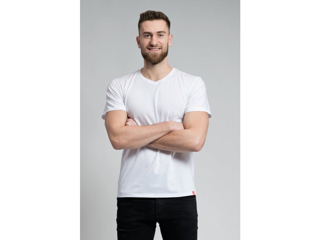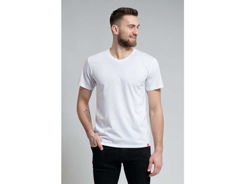 Bavlněné triko CityZen Bondy bílé výstřih do V