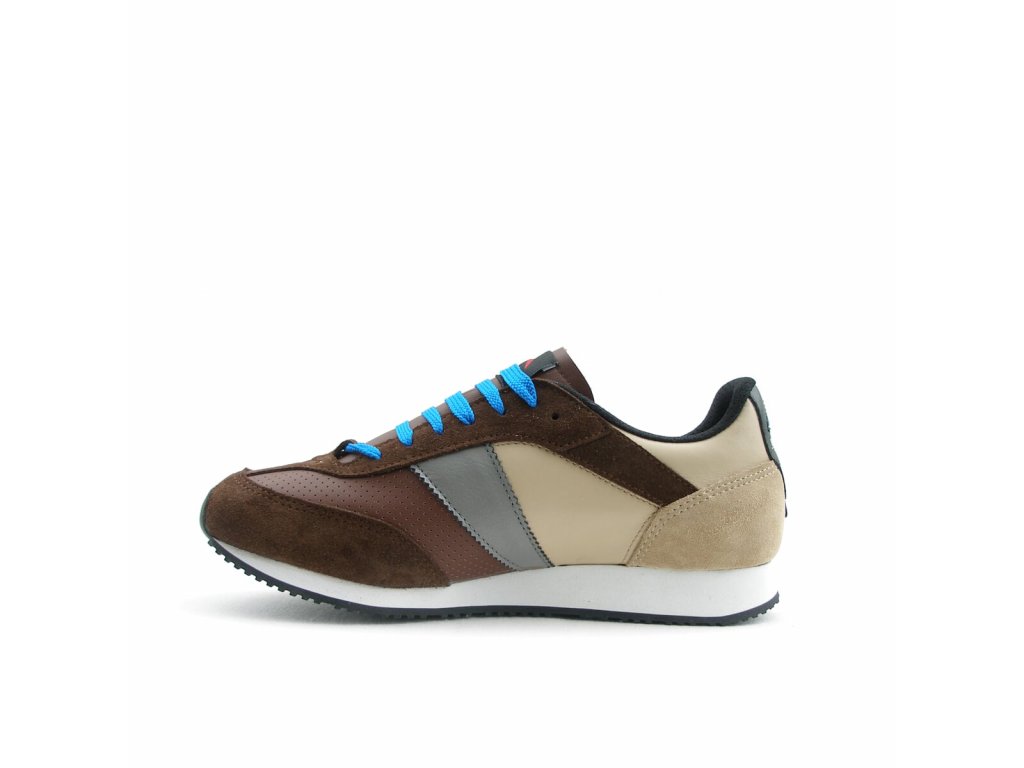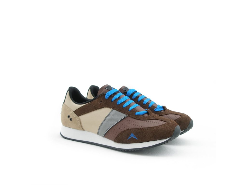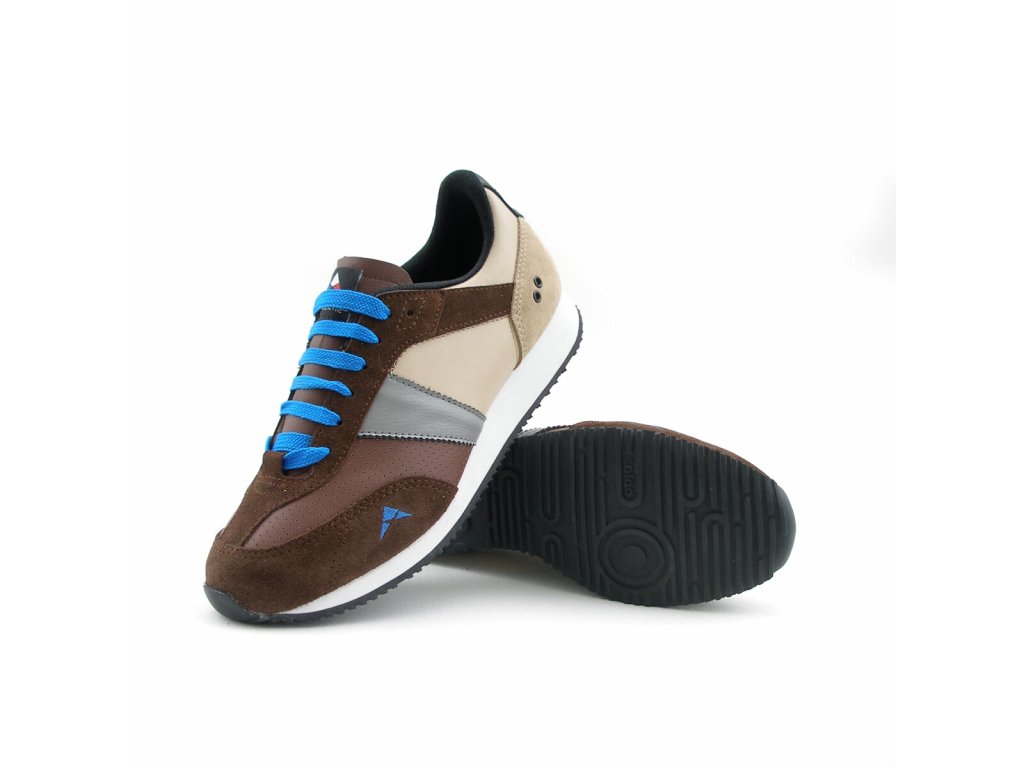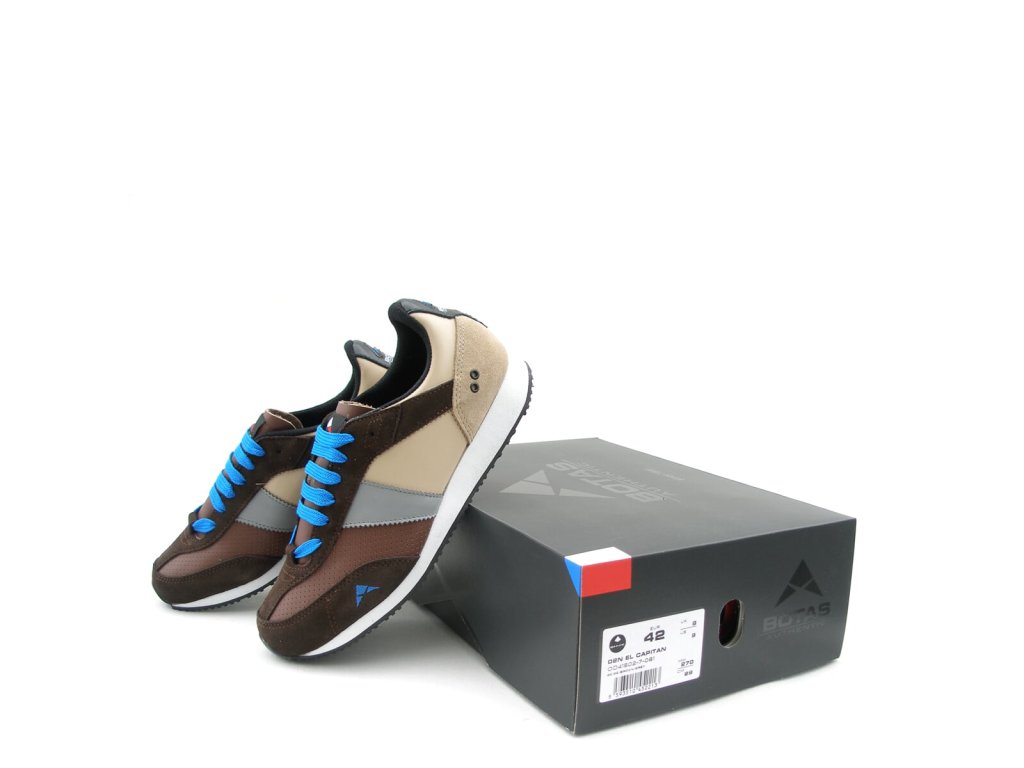 Celokožený svršek obuvi je kombinován z přírodních hladkých a štípenkových usní v béžovo-hnědo-šedém designu. Vnitřek obuvi tvoří měkký černý textilní materiál a anatomicky tvarovaná třívrstvá vyměnitelná vkládací stélka černé barvy s šedým potiskem grafického loga BOTAS AUTHENTIC. Zvýšená odlehčená podešev umocňuje výborný pocit při chůzi i v městském prostředí.