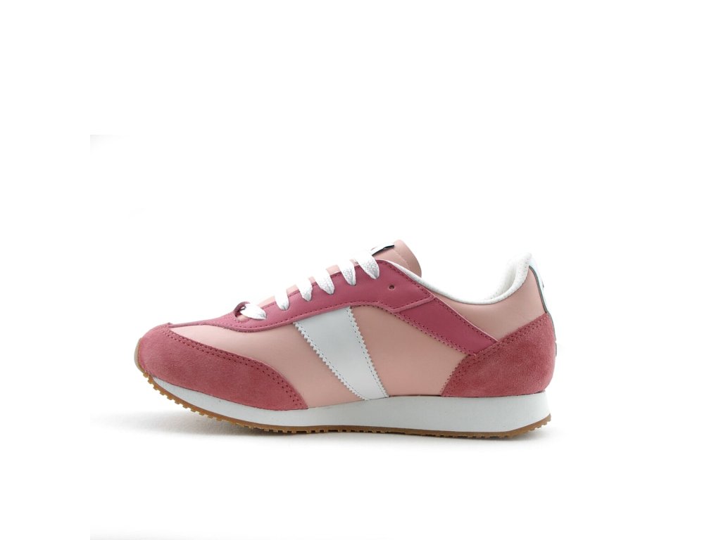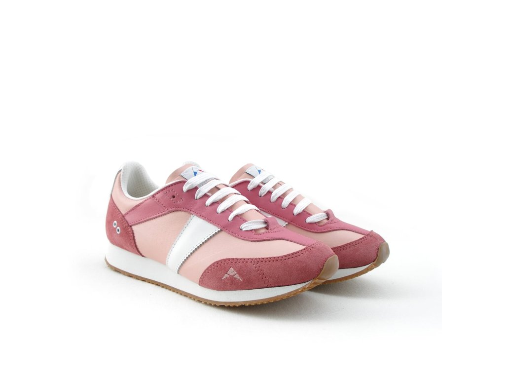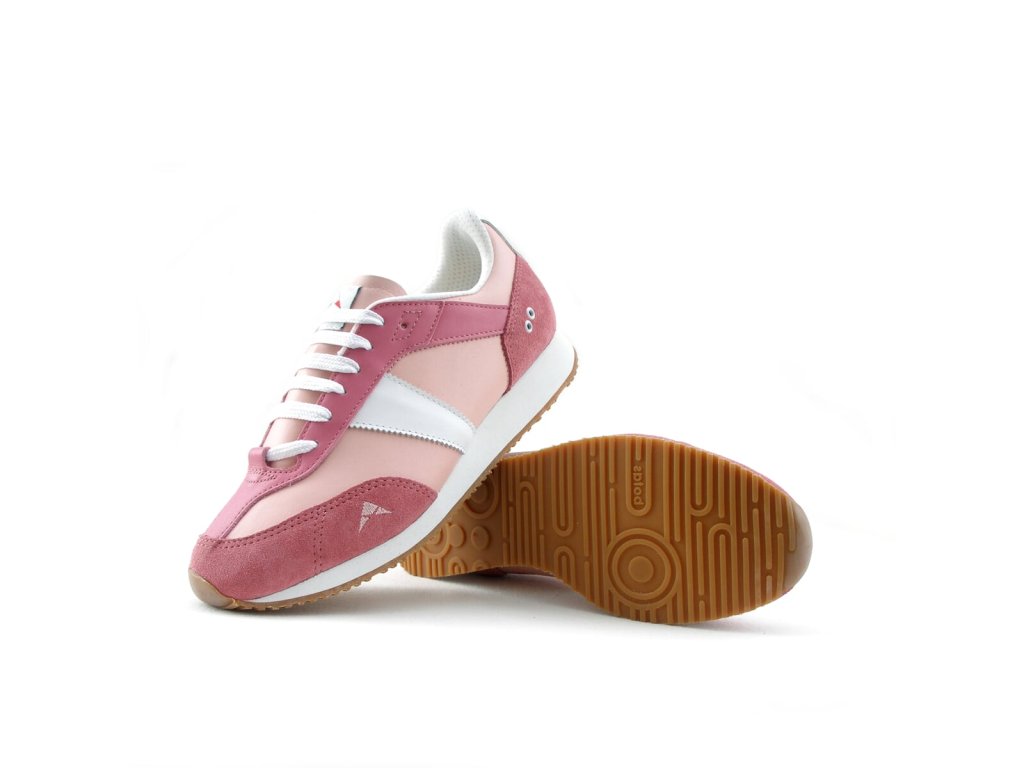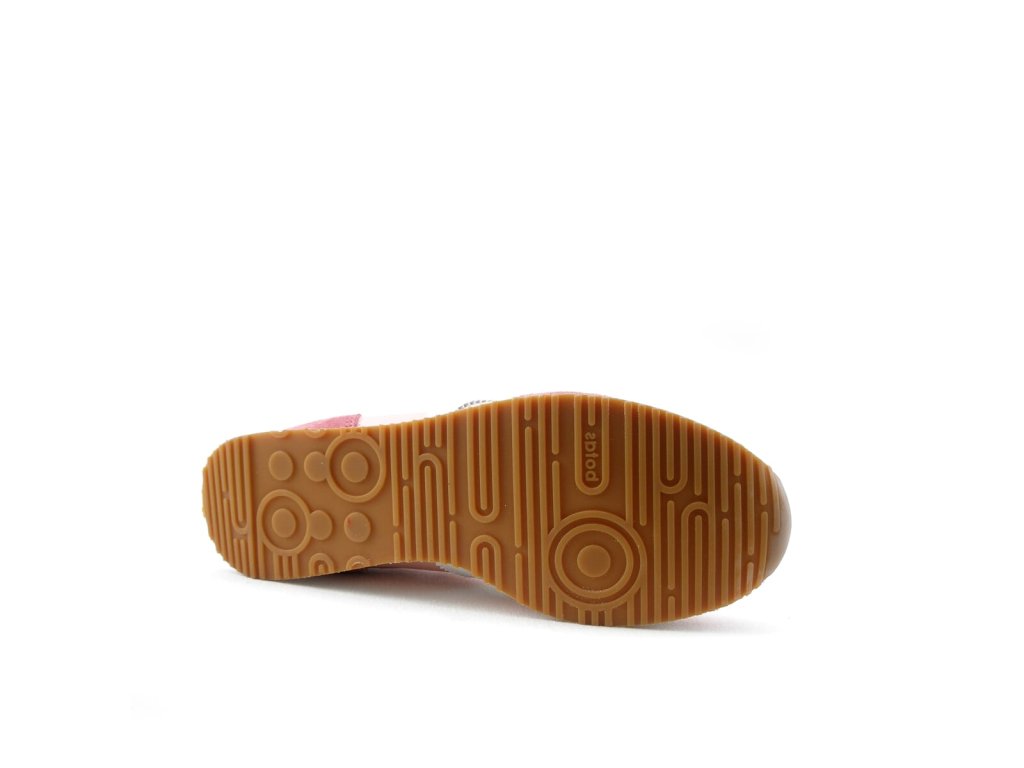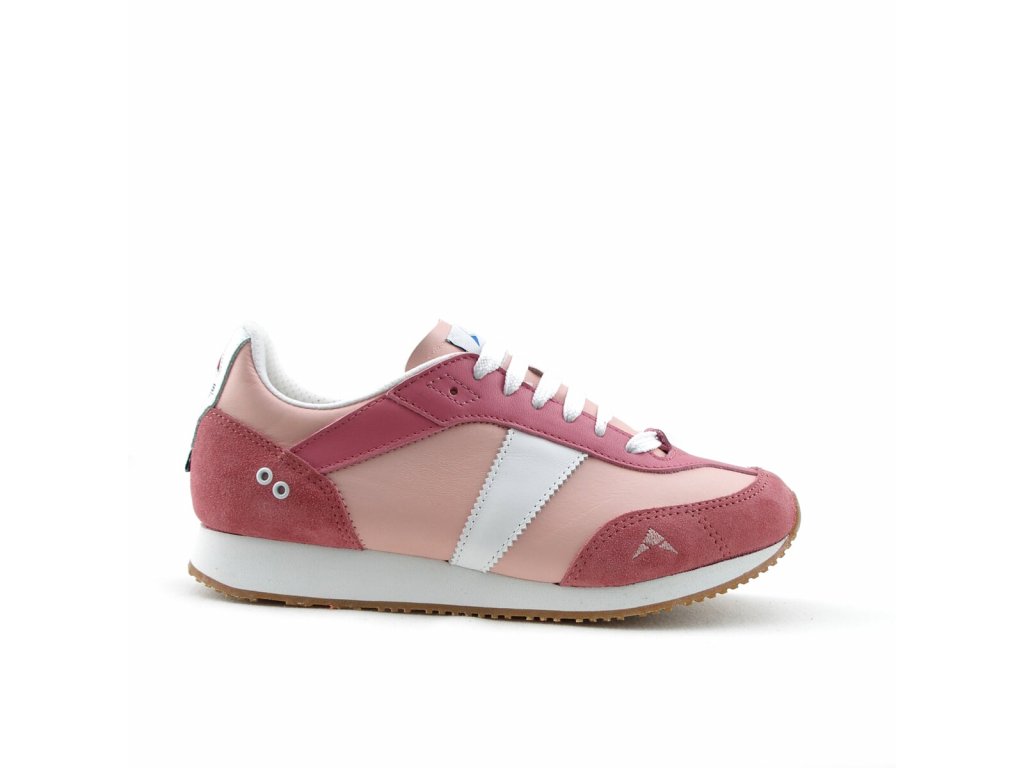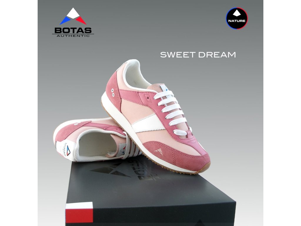 Celokožený svršek obuvi je kombinován z přírodních hladkých a štípenkových usní v růžovo-bílém designu. Vnitřek obuvi tvoří měkký bílý textilní materiál a anatomicky tvarovaná třívrstvá vyměnitelná vkládací stélka bílé barvy s šedým potiskem grafického loga BOTAS AUTHENTIC. Zvýšená odlehčená podešev umocňuje výborný pocit při chůzi i v městském prostředí.