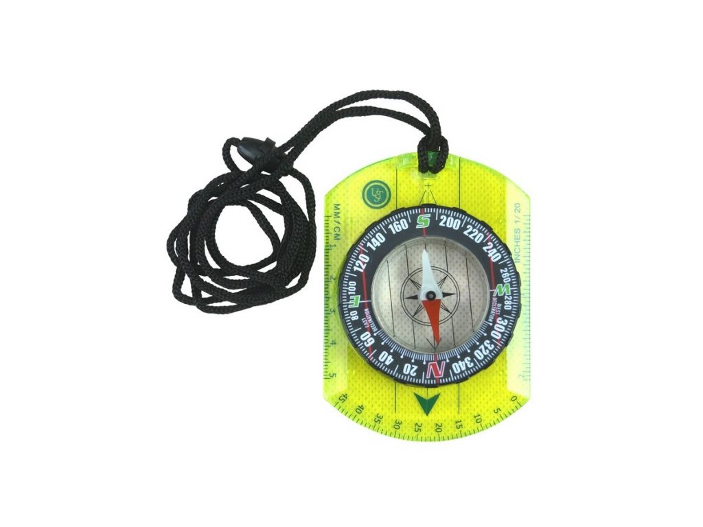 Malá plastová buzola s výrazně žlutou podložkou, která pomáhá s lepší viditelností (rozlišením) po přiložení na mapu. Součástí je praktický provázek pro možnost zavěšení (šňůrku lze odejmout).