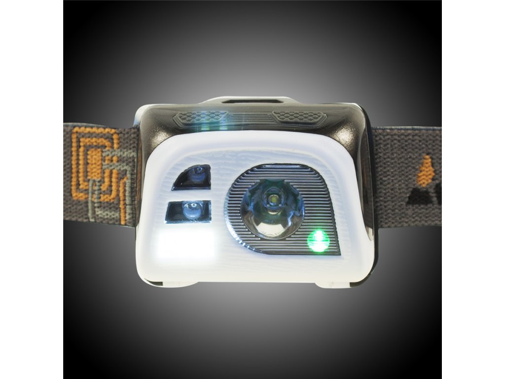 Univerzální čelovka s dobíjecí baterií pro širokou škálu outdoorových aktivit. Využijete ji při turistice, běhu, jízdě na kole, táboření, rybaření nebo při venčení psa. Svítilna je vybavena třemi světelnými zdroji: výkonnou diodou 3W XPE (140 lm), dvěma červenými LED diodami a bílou SMD LED, která bohatě stačí na chůzi a významně šetří baterii. Stav baterií indikuje zelená LED dioda vpravo dole. Odolná proti stékající vodě.
