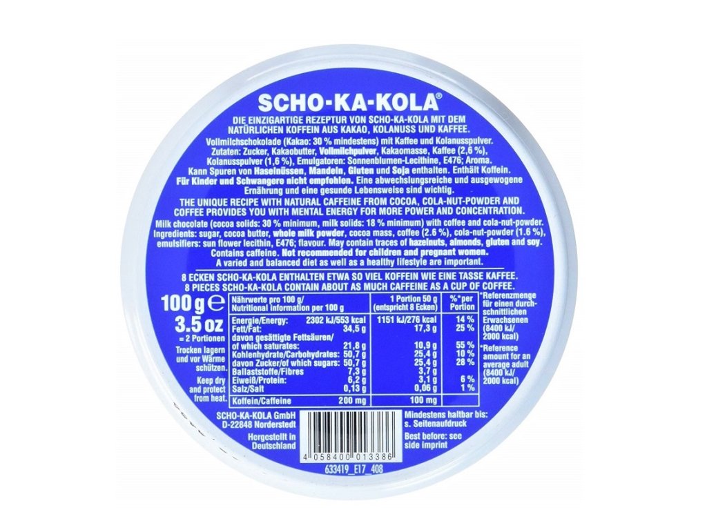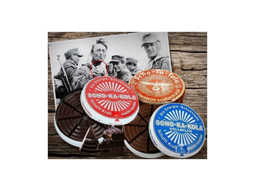 SCHOkolade-KAffee-KOLAnuss (čokoláda-káva-oříšek kola) od roku 1935 dodává energii nejen německým vojákům. Dobijte si baterky i vy! Vhodné pro vojáky, řidiče a pro všechny, kteří potřebují zvýšit duševní energii a koncentraci.