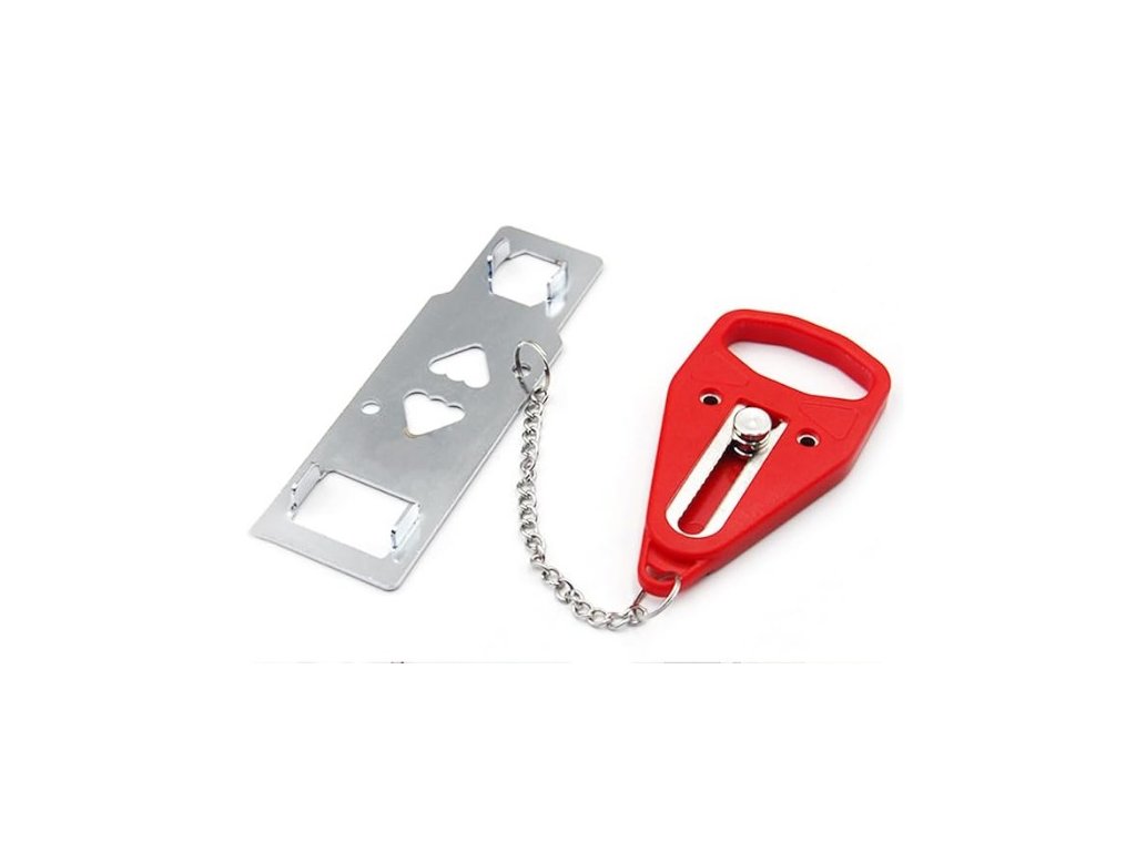 Snadná instalace: K instalaci není potřeba žádné nářadí. Jednoduše vložte kovový díl do zámku dveří, zavřete dveře a poté umístěte červenou drážku kliky na čep na kovovém plechu, což zajistí rychlou a bezproblémovou instalaci.