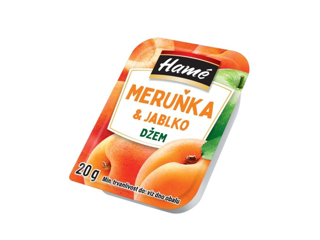 SloženíI: fruktózo-glukózový sirup, Meruňky (26 %), Jablka (18 %), Regulátor kyselosti: kyselina citronová, Želírující látka: pektin, Antioxidant: kyselina askorbová, Barvivo: beta-karoten, Ve 100 g výrobku je obsaženo 69 g přírodních sladidel, Pro výrobu 100 g hotového výrobku bylo použito 50 g ovoce, Rozdíl mezi % ovoce a použitými g ovoce na výrobu 100 g výrobku je způsoben odpařením části vody z některých složek během výrobyVýživové údajeBěžné hodnoty na 100 g výrobku:energie (kJ) 1182energie (kcal) 278tuky (g) 0,1z toho nasycené mastné kyseliny (g) 0,0sacharidy (g) 68,6z toho cukry (g) 58,9bílkoviny (g) 0,3sůl (g) 0,0Džem Višeň a jablko Množství: 0.02kg