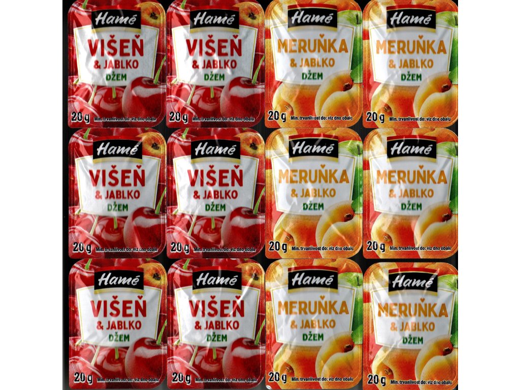 Džem Višeň a jablko 6x20g a Meruňka a jablko 6x20g
