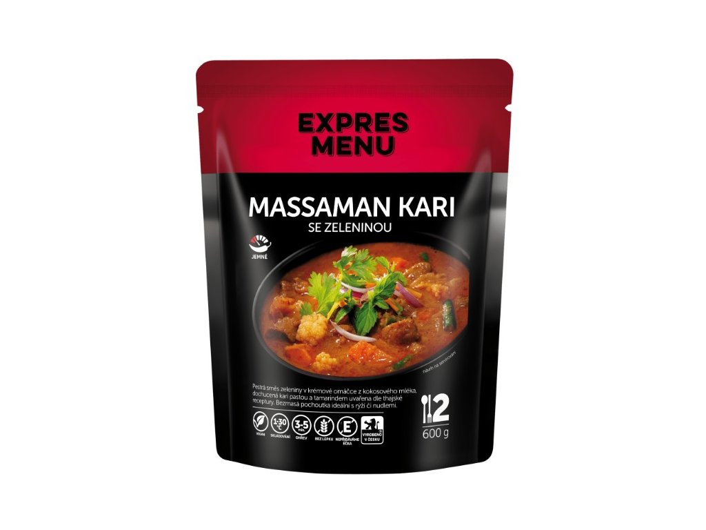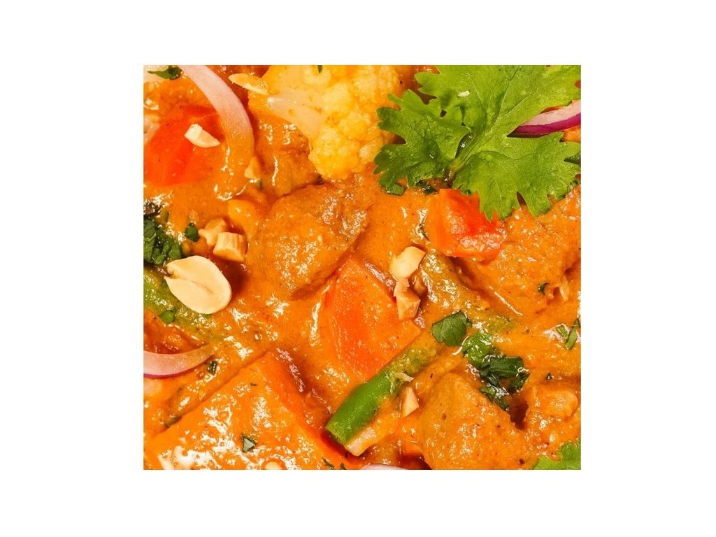 Pestrá směs zeleniny v krémové omáčce z kokosového mléka, dochucená massaman kari pastou a tamarindem. Bezmasá pochoutka, která si skvěle rozumí s rýží či nudlemi.