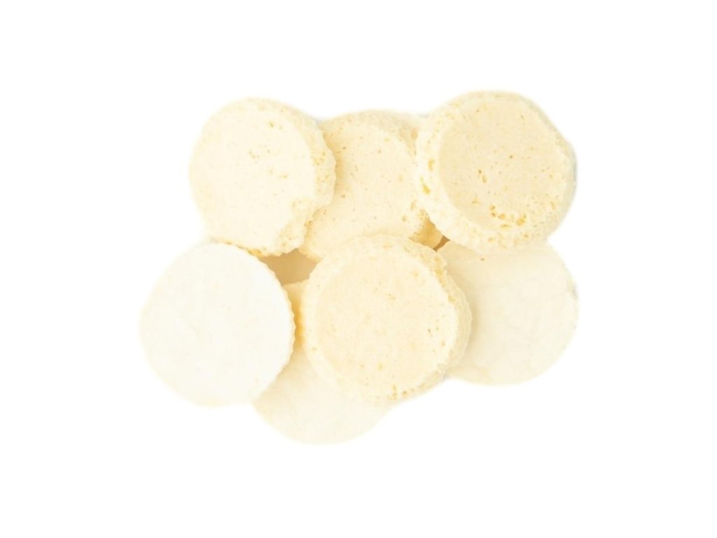 Křupavá lyofilizovaná jogurtová sušenka, která spojuje jemnou chuť jogurtu s příchutí jablka.