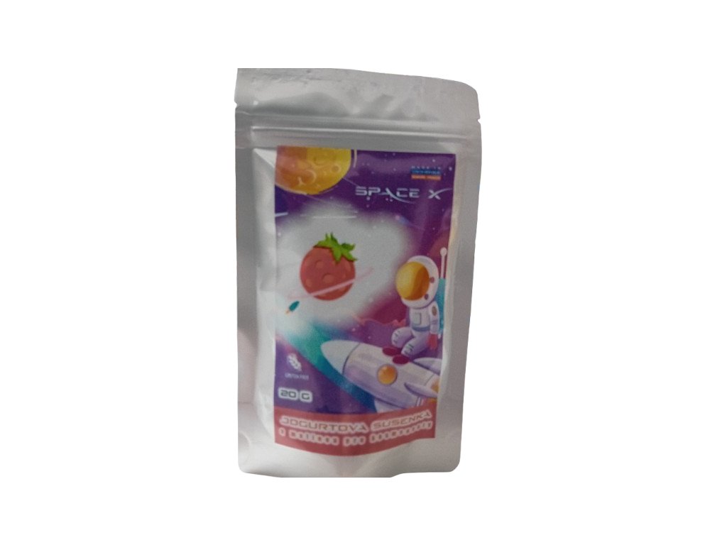 Složení: Lyofilizovaný jogurt (mléko, smetana, sušené mléko, jogurtová a probiotická kultura), cukr, lyofilizovaná jahoda.