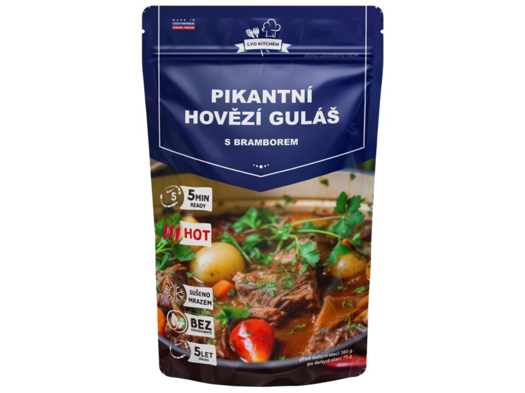 Lyo Pikantní hovězí guláš s bramborem - Vydatné jídlo s kousky hovězího masa a brambor okořeněný chilli.
