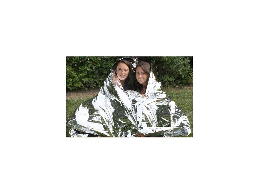 Záchranná termofólie pro dvě osoby. Odráží až 90 % tělesného tepla. Rozměry: 244 x 150 cm. Váží pouhých 70 g.