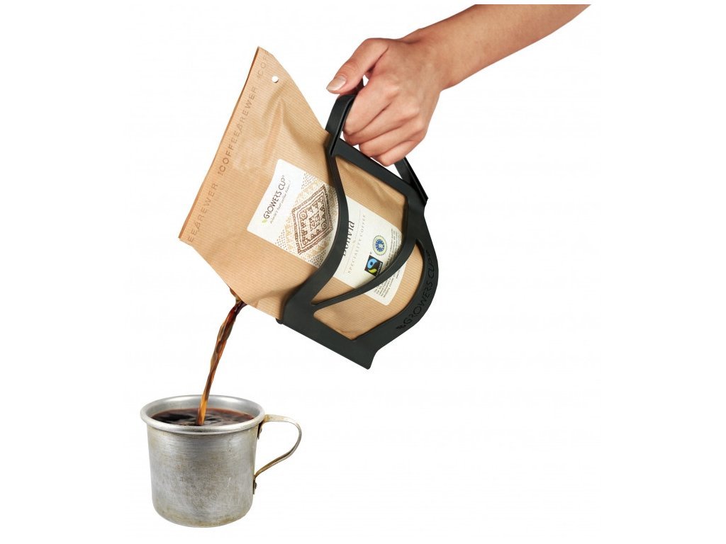 Nepotřebujete žádný další přístroj, vše se děje jen pomocí speciálního patentovaného balení této kávy od firmy Grower's cup. Za pár minut Vám toto balení připraví 300 ml opravdu lahodné kávy s jasným původem. Nyní se na cestách nemusíte spokojit s instantní kávou.
