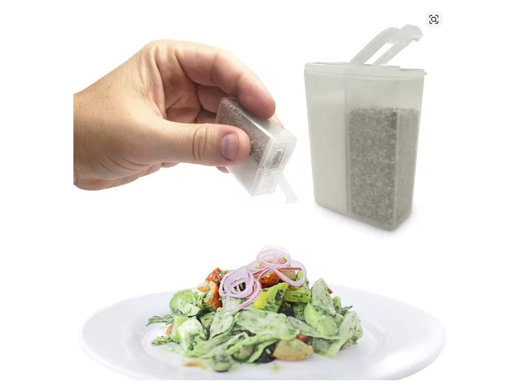 2v1 kempingová kořenící třepačka, víceúčelová dóza na koření s víkem, 2 přihrádky na venkovní grilování, vaření, sůl a pepř...