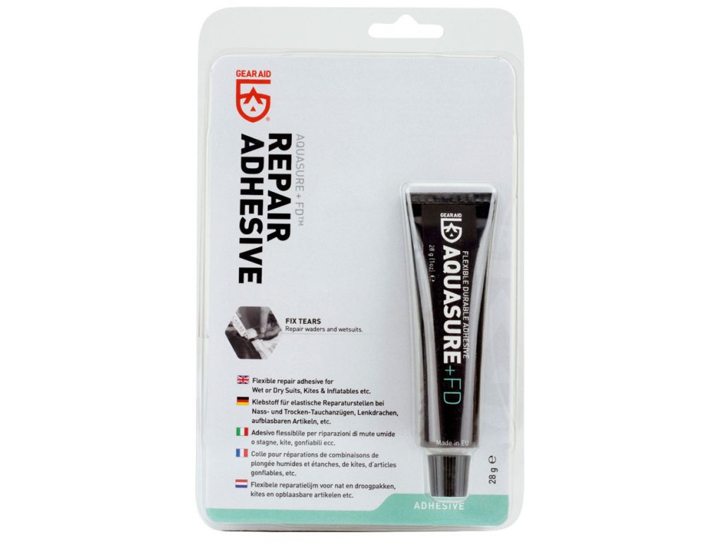 AQUASURE+FD je lepidlo/tmel na bázi polyuretanu pro opravu středně těžkých zátěrovaných tkanin (Cordury) a neoprenu. Ze skupiny SEAM GRIP / AQUASURE má střední viskozitu, vytváří 1 mm tlustou vrstvu PU pryže, která je samonosná, pružná a ohebná. Slep je dokonale vodotěsný. Umožňuje bezzáplatové lepení, zcelováni natupo a také rekonstrukci chybějícího materiálu do otvoru o průměru 20 mm. Při lepení nafukovacích člunů a matrací (tlakovaných válců) je překryv záplatou z pevnostního hlediska nutný. AQUASURE+FD je vhodný pro bezzáplatové lepení poškozených samonafukovacích matrací.