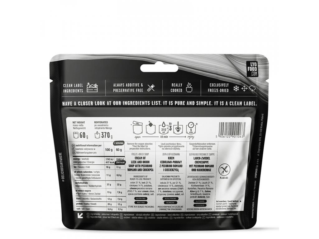 LYOfood Krémová pórková polévka s cibulí, sýrem Pecoríno a cizrnou 60g