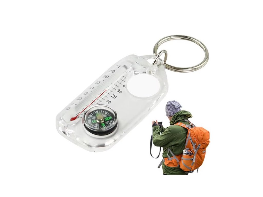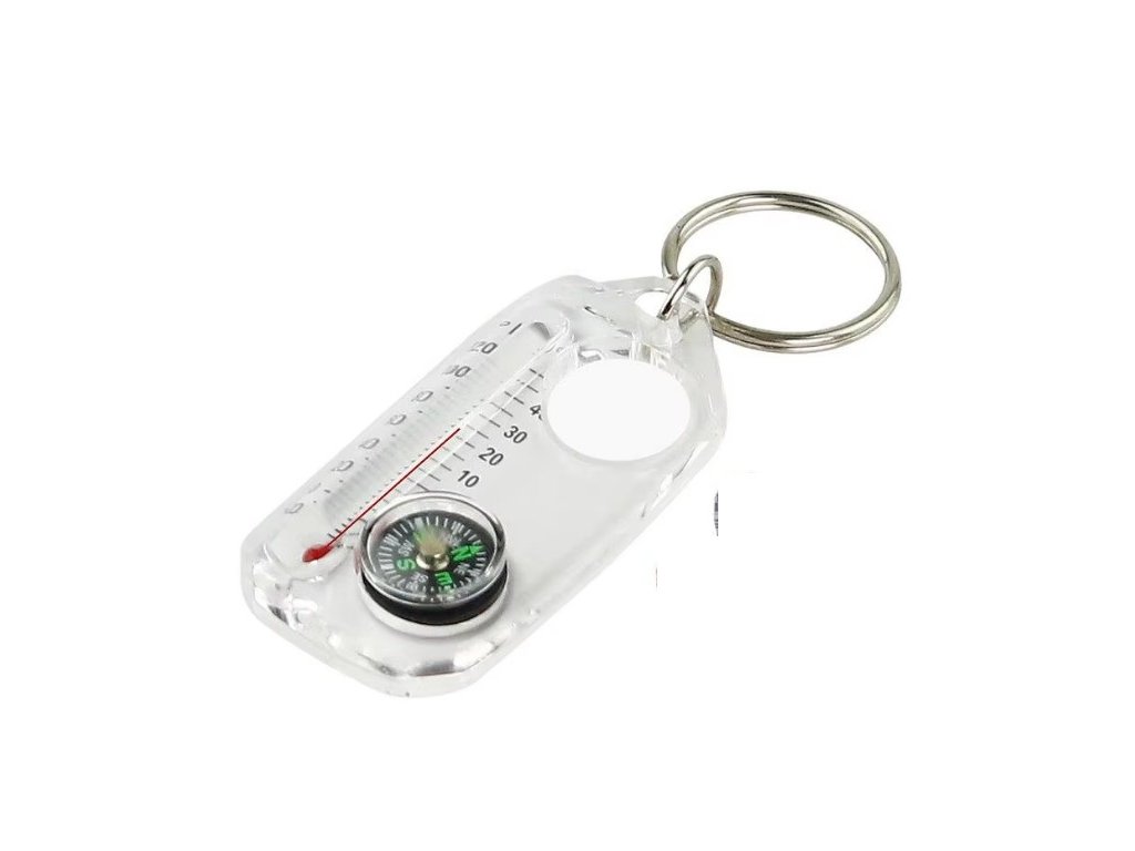 klíčenka kompas, teploměr, lupa
