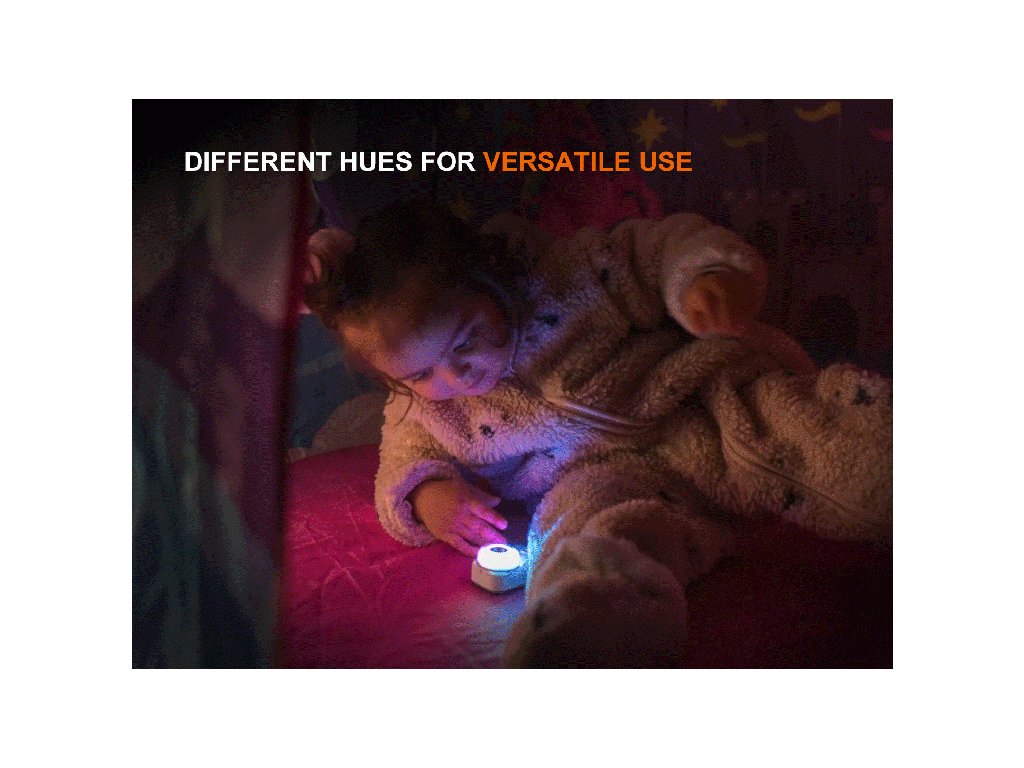 - Pět atmosférických režimů: čtecí světlo 15 lumenů (8,9 hodiny) -> červené světlo 3 lumeny (11,5 hodiny) -> červené a modré blikání 3 lumeny -> RGB 2 lumeny -> Aurora 2 lumeny.