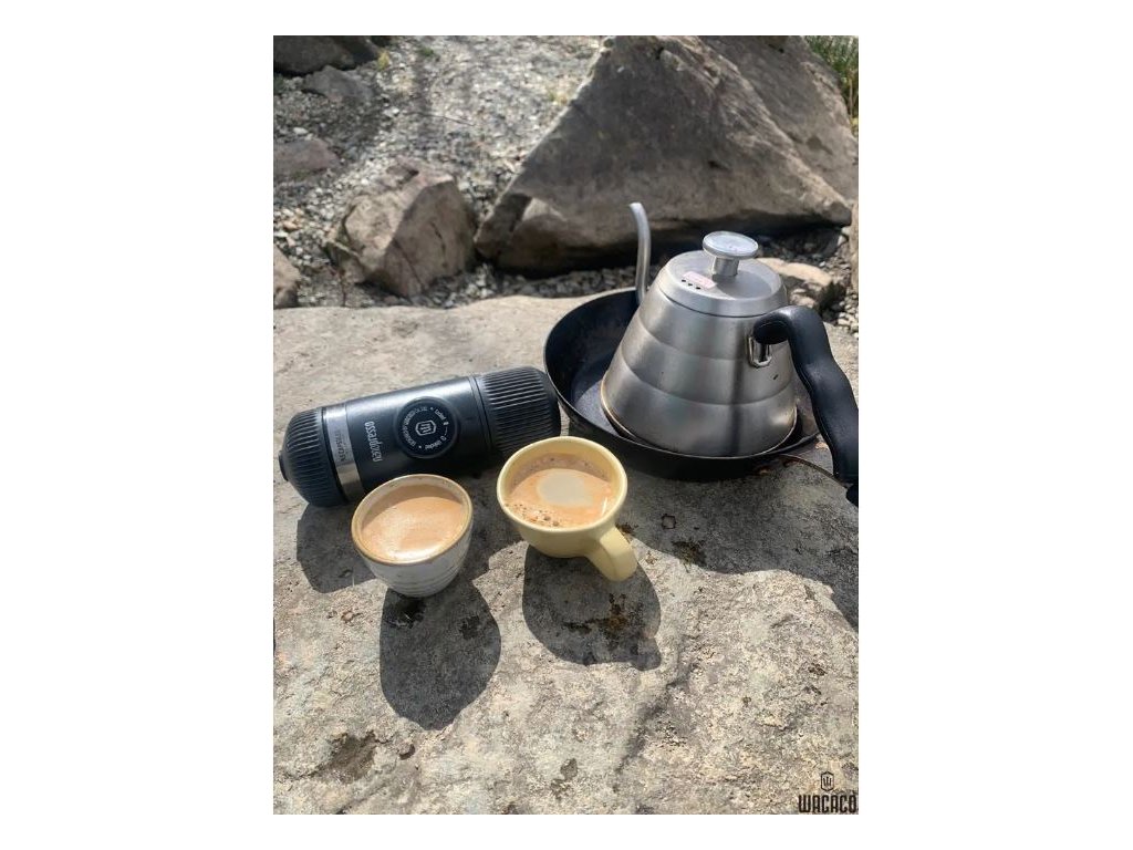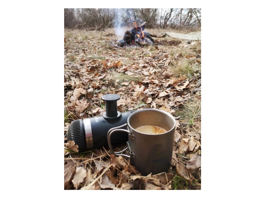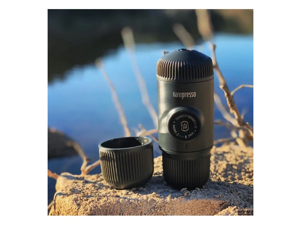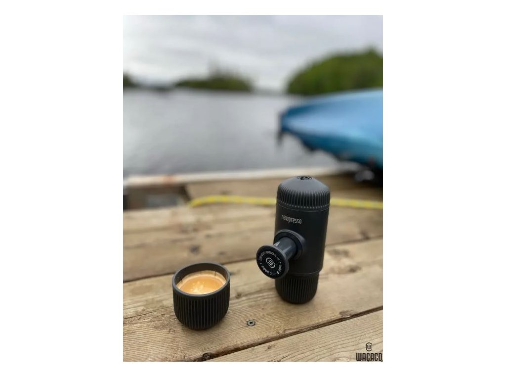 Manuální outdoorový presovač bez nutnosti přívodu energie, který vám umožní vychutnat si skutečnou horkou kávu v přírodě téměř bez omezení, sada obsahuje nesmírně lehký elegantní kávovar v tmavě šedém odstínu a transportní sáček (pevné pouzdro se zipem lze samostatně dokoupit). K přípravě chutného espresa je zapotřebí pouze horká voda a mletá káva. A samozřejmě Nanopresso. Snadné čištění po použití.