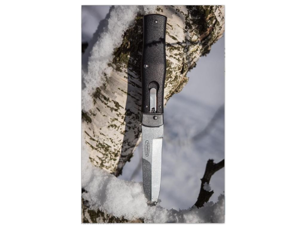 Vyhazovací nůž Mikov Predator 241-NH-1/KP má čepel vyrobenou z nerezové oceli 420. Plastová střenka má tvar, který perfektně padne do ruky. Nůž je dodáván včetně pouzdra.