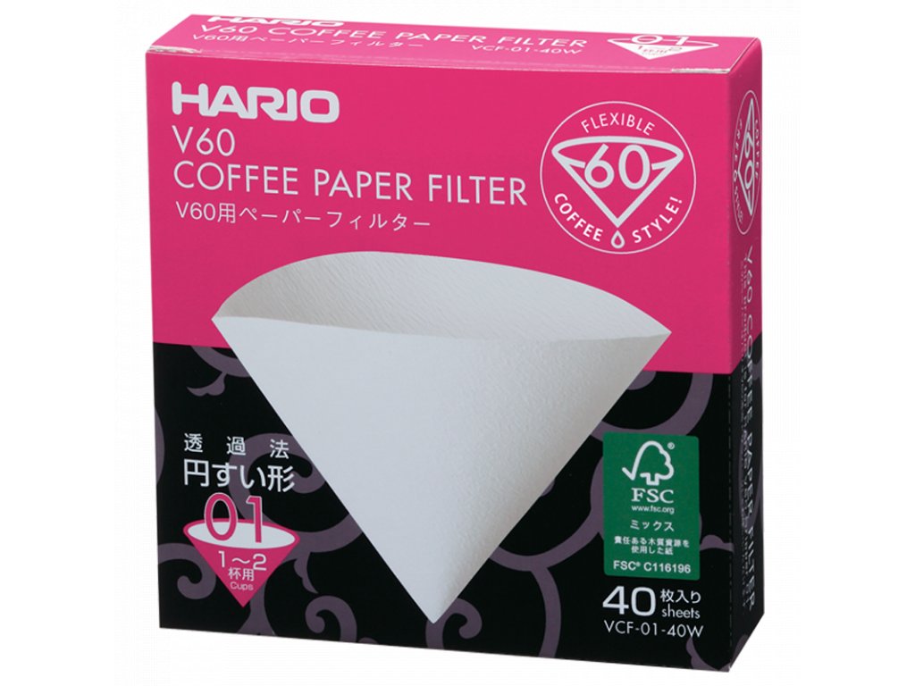 Papírové filtry na překapávanou kávu, určené speciálně pro Dripper Hario V60-01, samozřejmě použitelné ve všech dripperech.