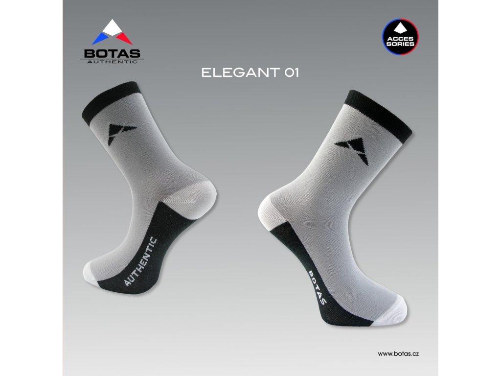 Designové ponožky české výroby ELEGANT 01 vyššího střihu v šedo-černo-bílé barevné kombinaci vhodné. K formálnímu i neformálnímu oblečení. Módní doplněk moderního člověka, který chce oživit svůj outfit pěkným designovým kouskem.