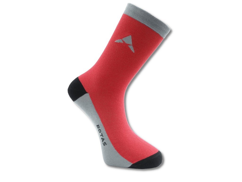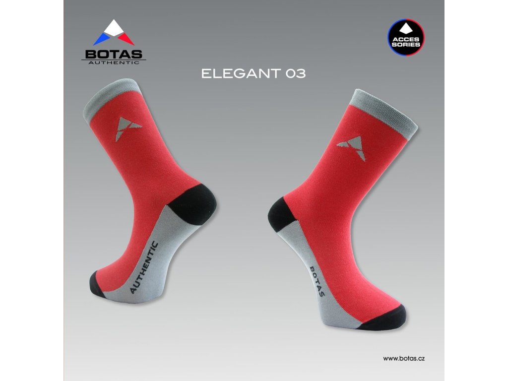 Designové ponožky české výroby ELEGANT 03 vyššího střihu v červeno-šedo-černé barevné kombinaci vhodné k formálnímu i neformálnímu oblečení. Módní doplněk moderního člověka, který chce oživit svůj outfit pěkným designovým kouskem.