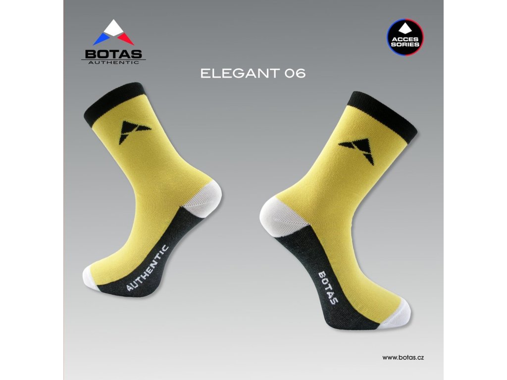 Designové ponožky české výroby ELEGANT 06 vyššího střihu v žluto-černo-bílé barevné kombinaci vhodné k formálnímu i neformálnímu oblečení. Módní doplněk moderního člověka, který chce oživit svůj outfit pěkným designovým kouskem.