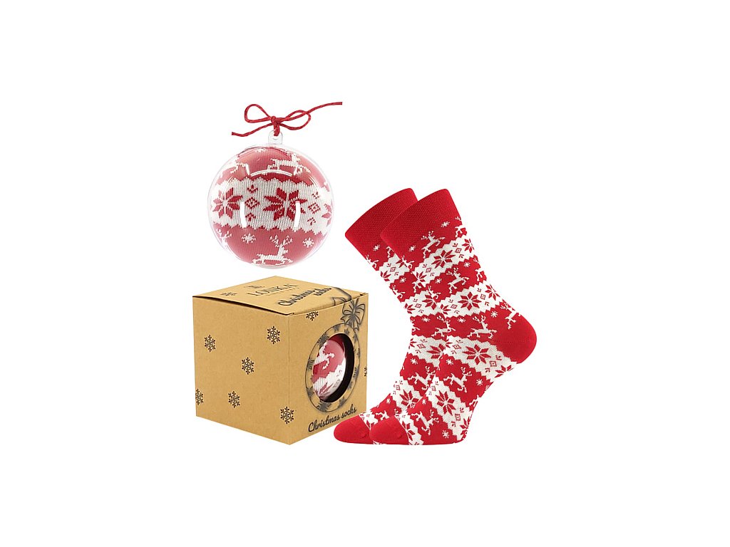 Unisex ponožky s vánočním motivem zabalené jako vánoční ozdoba.