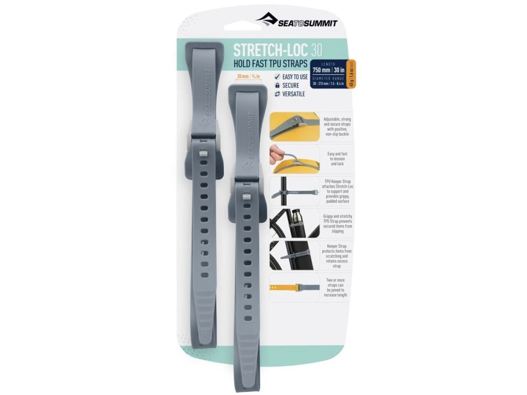 Sada víceúčelových stahovacích popruhů značky Sea To Summit. Popruhy jsou vyrobenyný z odolného termoplastického polyuretanu (TPU). Snadno jimi připevníte věci na batoh, kolo nebo ke střešním nosičům vozidla a pod. Materiál popruhů je protiskluzový a dobře přilnavý k většině povrchů. Jednoduché použití - protáhnete a pomocí spony zajístíte.