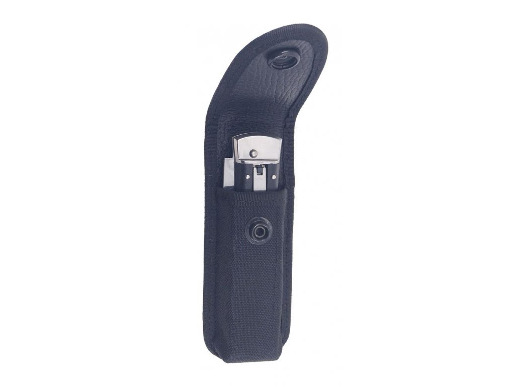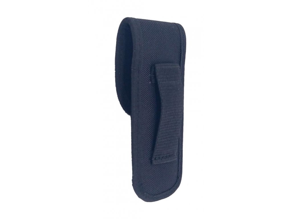 Kvalitní univerzální nylonové pouzdro v černém provedení s OCELOVÁM drukem a okem pro zavěšení na opasek do šířky 55 mm.