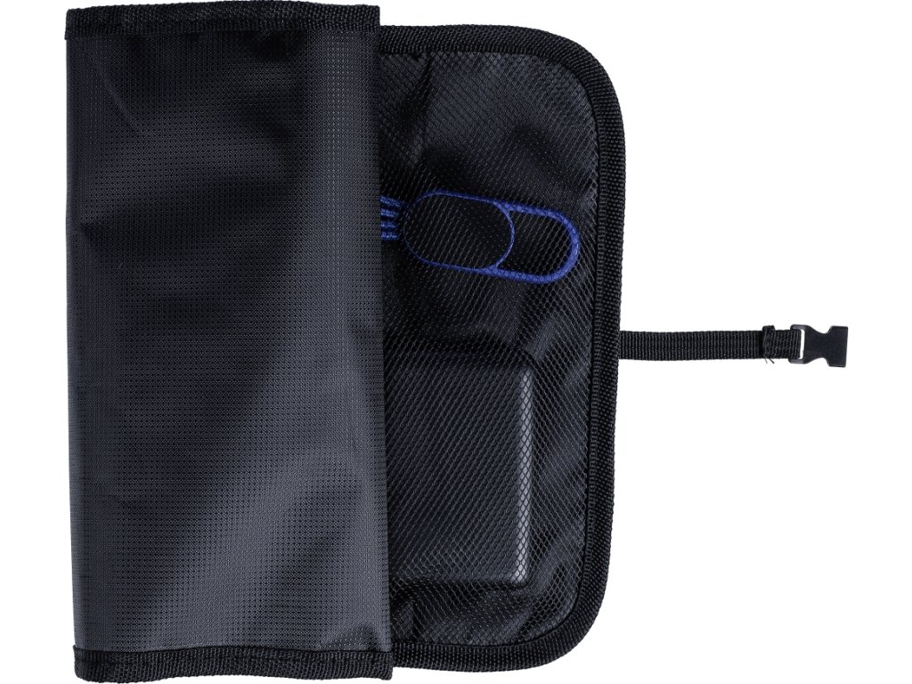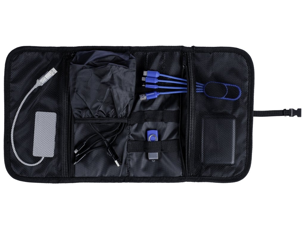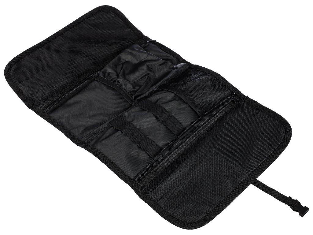 Polyesterová rolovací taška 1680D s plastovou přezkou. S několika kapsami a přihrádkami na zip uvnitř pro uložení nabíjecích kabelů nebo zařízení