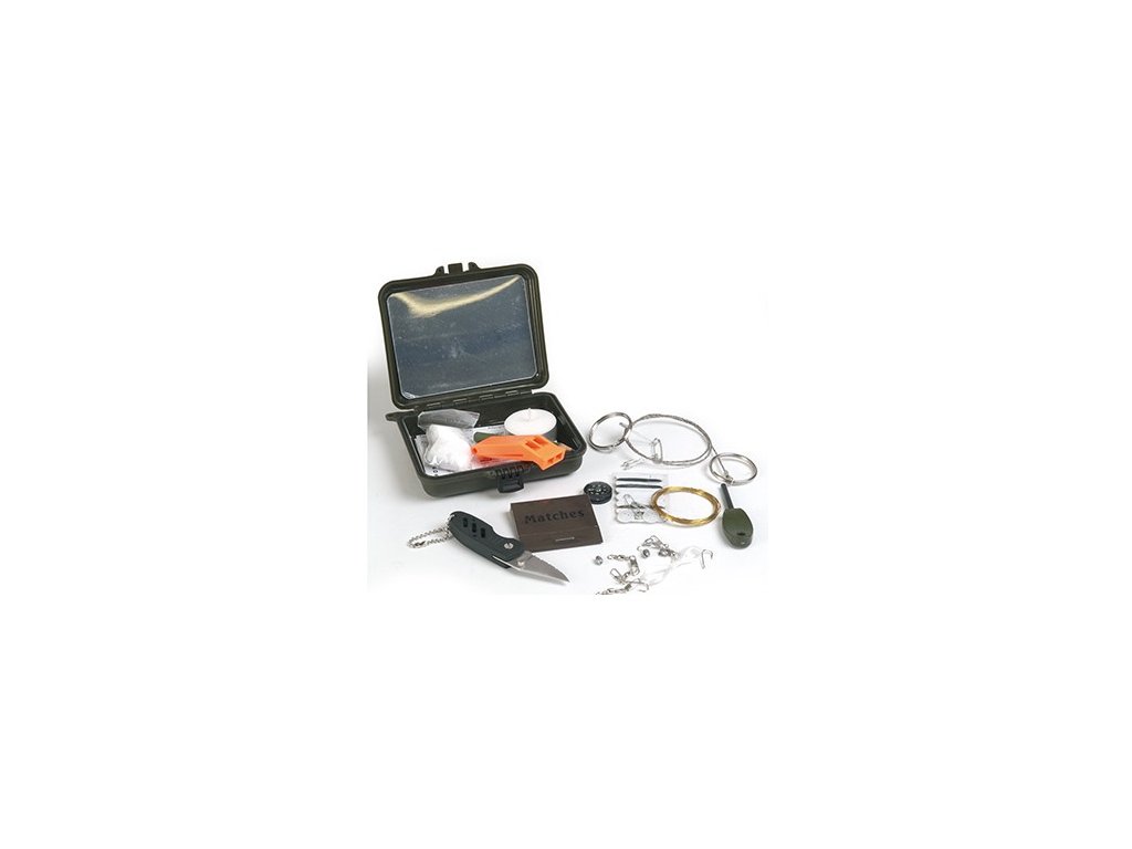 Obsah: malý nožík, drátovou pilku, drát, rybářský set, vata, zápalky, svíčku, tužku, mini kompas, šitíčko, zavírací špendlíky, křesadlo pro rozdělání ohně, zrcadlo, ,
