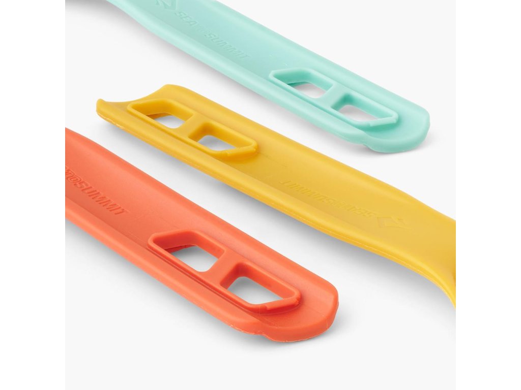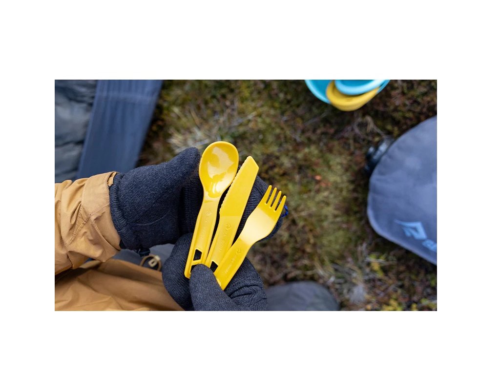 Kompletní cestovní příbor od značky Sea To Summit vyrobený z odolného a zdravotně nezávadného polypropylenu. Obsahuje lžíci, vidličku a nůž. Jednotlivé kusy se dají spojit dohromady a vznikne vám tak jejich prodloužená varianta, se kterou se lépe jí z hlubokého nádobí (hrnce) nebo se výborně hodí pro jezení dehydrované stravy přímo z obalu.