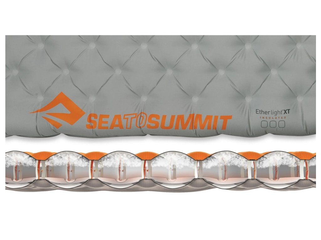 Sea to Summit Ether Light XT Insulated Rectangular Large: velmi lehká a pohodlná 10 cm tlustá nafukovací karimatka s izolací pro celoroční tepelný komfort. Díky tloušťce karimatky a jejímu konstrukčnímu řešení v podobě smyčkových přepážek, se vám při otáčení boky zaboří hlouběji do matrace, ale nedotknout se země.