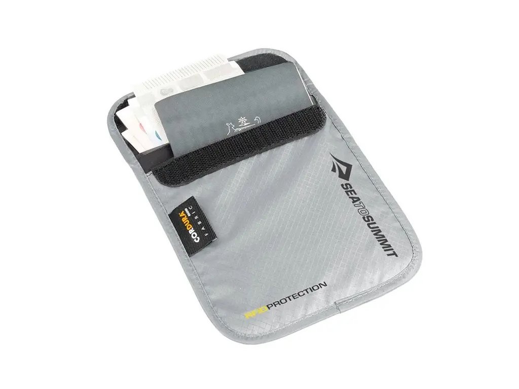Řada pouzder na krk RFID nabízí zabezpečení proti elektronickým krádežím ať už cestujete kamkoli. Dle vybrané velikosti má dvě nebo tři kapsy, do kterých se vejdou cestovní pasy, kreditní karty a hotovost. Jsou vyrobeny z lehkého a odolného materiálu Ultra-Sil® s podšívkou z materiálu odolného vůči RFID. 3D polstrovaná síťovina na zadní straně je příjemná při styku s pokožkou. Neck Pouch RFID Small (velikost S) je ideální pro uložení pasů a několika kreditních karet.