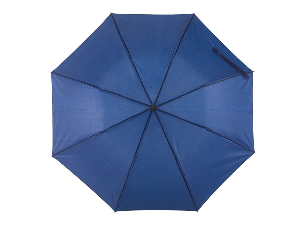 Skladaací deštník s manuálním otvíráním, černou plastovou rukojetí s polyesterovou stříškou. 2dílným kovový rám s kovovými žebry. Zapínání na suchý zip. Obal
