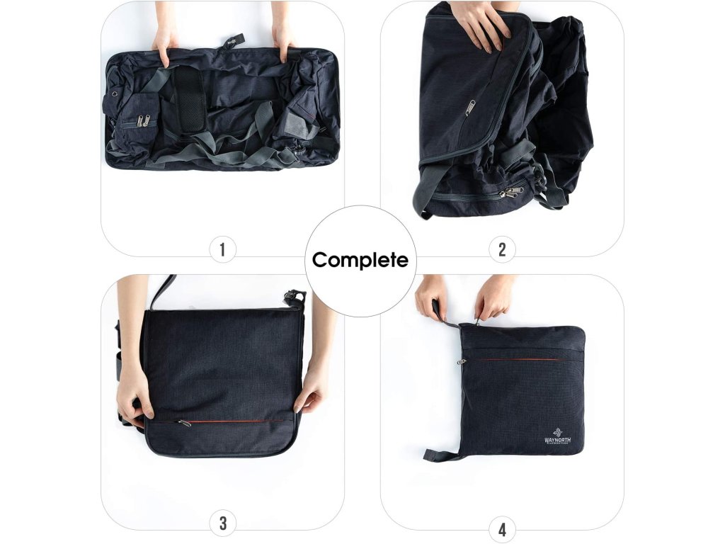 Tašku lze složit do malé kapsy. Po složení má obal velikost: 29 x 29 x 5 cm.