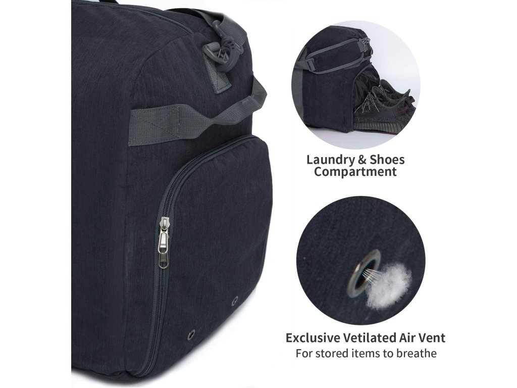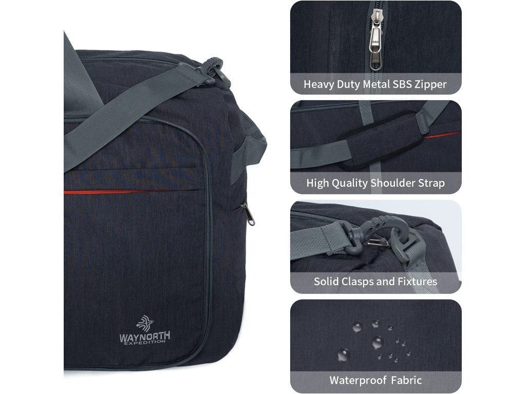 Hlavní prostor je uzavíratelný zipem. Kromě hlavního prostoru má taška 5 kaps. Madla je možné spojit textilní spojkou se suchým zipem pro pohodlné uchopení a nošení. Taška má nastavitelný odnímatelný popruh přes rameno. Na zadní straně tašky je umístěn popruh sloužící jako držák na výsuvné madlo cestovního kufru.