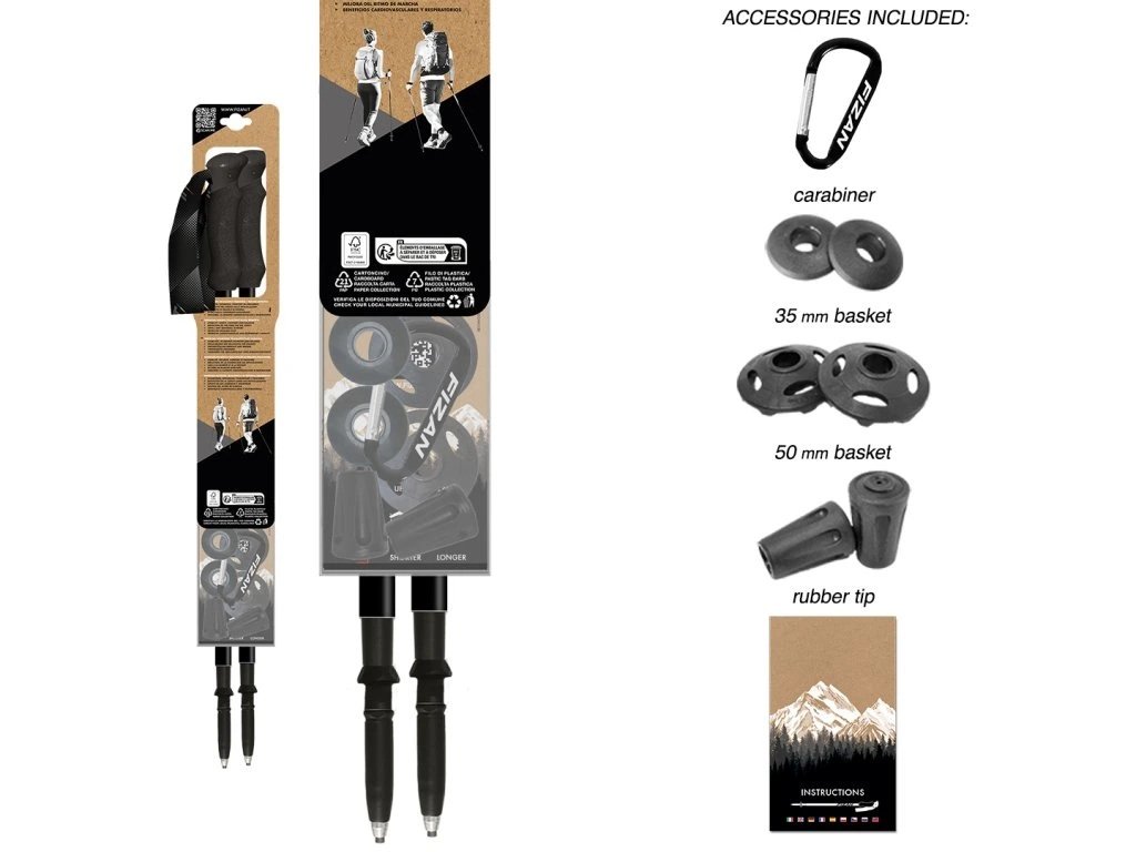 Jsou vyrobeny z tenkého a pevného hliníku, Dají se roztáhnout až na 132 cm délky z původních 59 cm ve složeném stavu.
