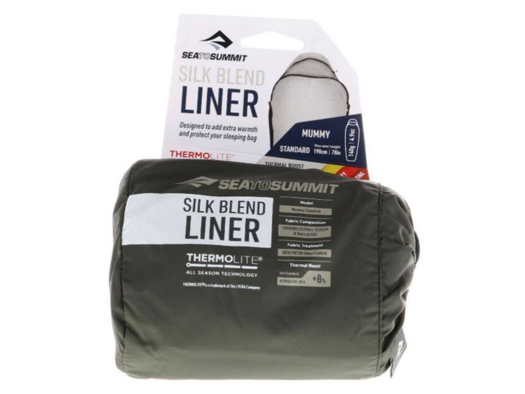 Vložka do spacáku Silk Blend Sleeping Bag Liner - Mummy od značky Sea to Summit je navržená především pro pohodlí, které dodá vašemu spacáku díky přízí Thermolite® Pro (72%), s infračervenou technologií, a hedvábí (28%). Tato kombinace vytváří měkké, luxusní prostředí pro spánek. Samozřejmostí jsou strečové panely podél švů.