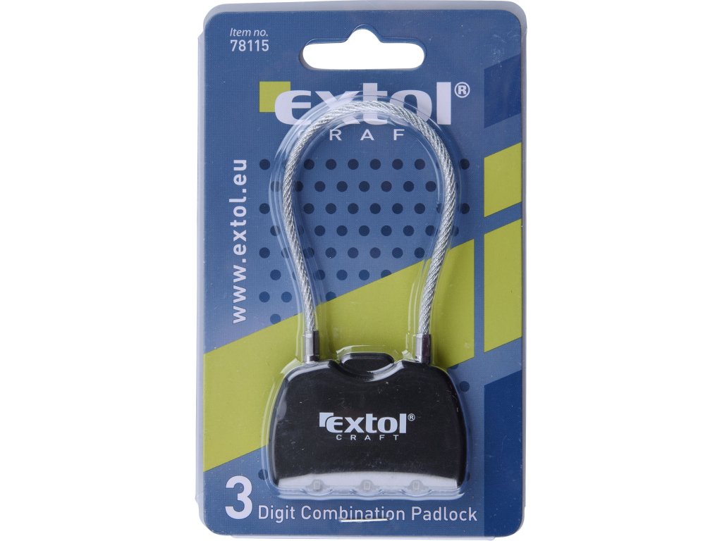 Zámek Extol kombinační s trojmíst. kódem a lankem150mm černý